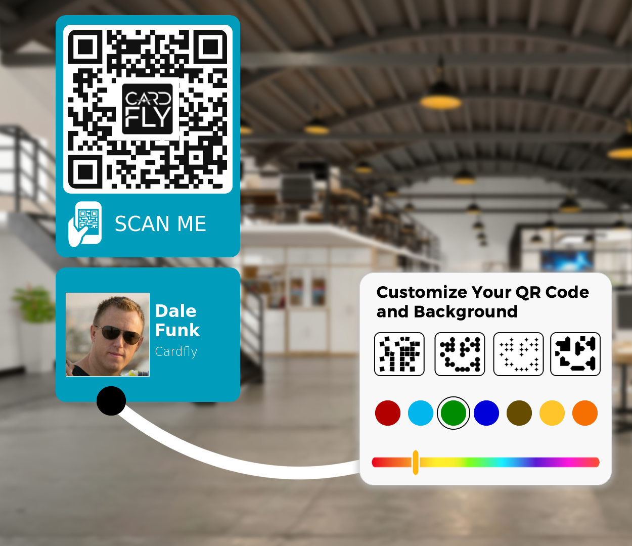 Auto Sync with Your Cardfly Profile Your name, title, logo, and QR code update instantly across every background.
